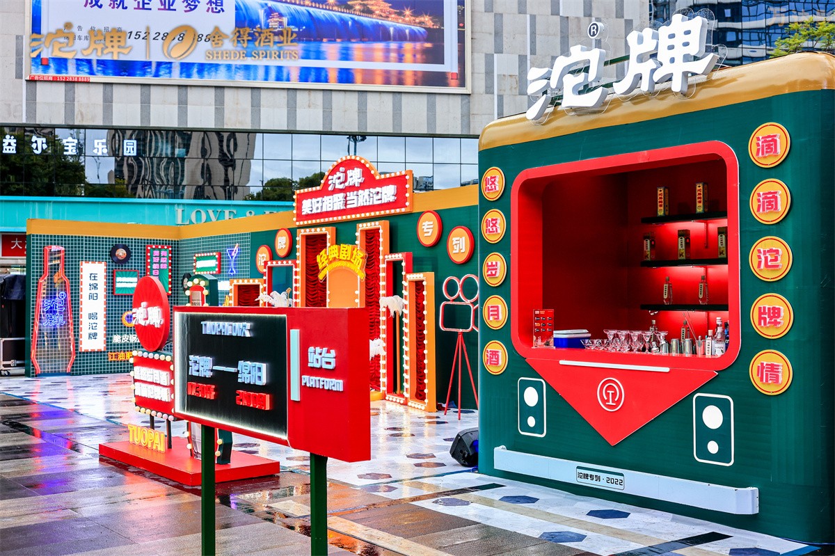 此次沱牌延续歌舞演出、花式调酒、互动打卡等形式,与在场的参与者共同穿越时光,重温怀旧经典,细品至臻浓香。在沱牌酒邻节上,绿皮火车头、经典放映室、复古舞台等充满年代感的布景,加上对经典曲目的模仿演绎,让参与者一秒穿越回 80 、90 年代,掀起了一场“回忆杀”。