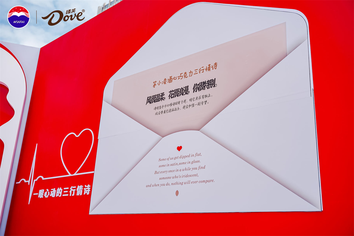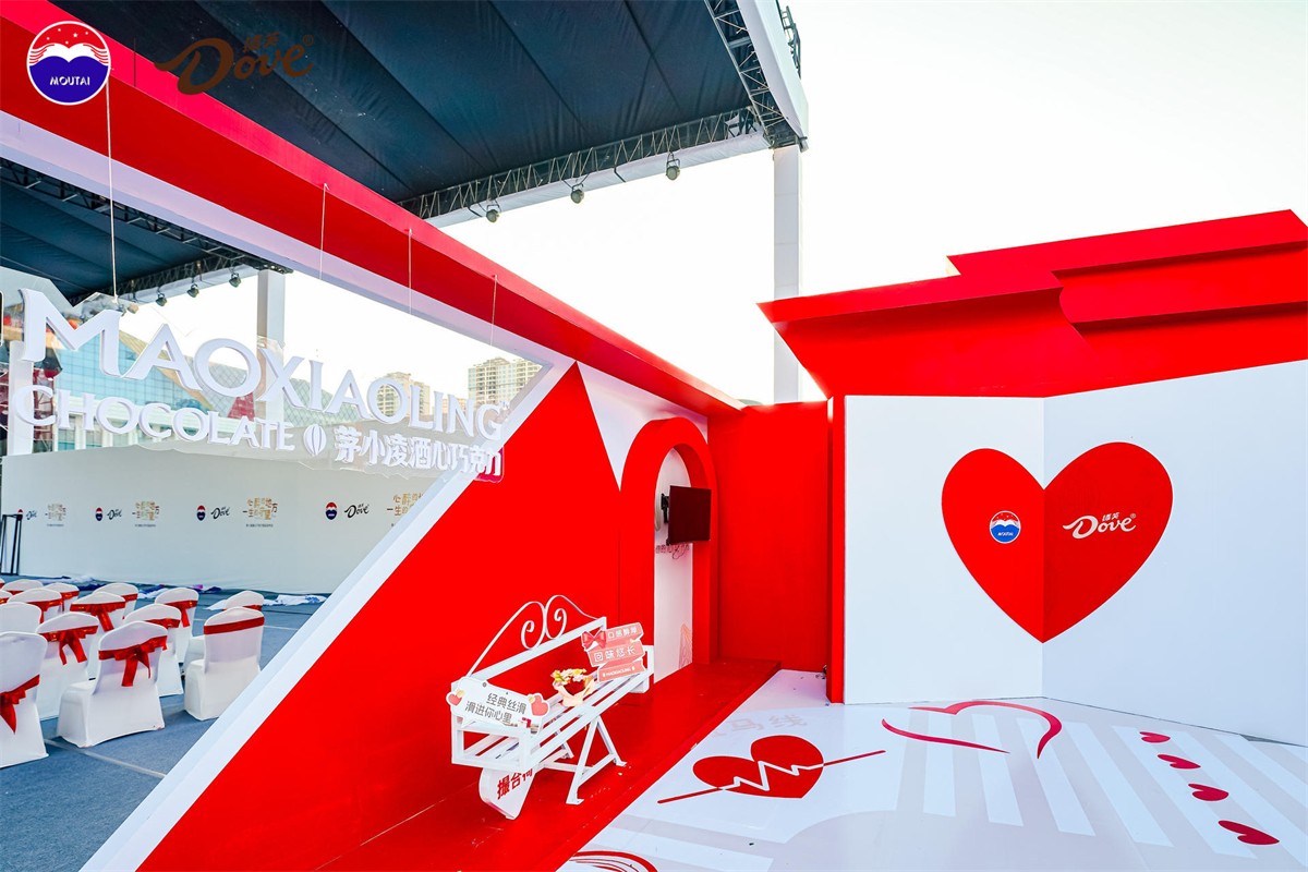 此次发布会,茅小菱酒心巧克力带着德芙的丝滑与茅台醇,将这份充满爱意的礼物献给消费者,活动在整体造型设计上,以“礼物”为灵感,以爱连接,让这份礼物更有温度,将礼盒打开,将巧克力的丝滑与茅台的美好,充满会场的每一个角落,与茅小菱一起共赴这场浪漫之约。