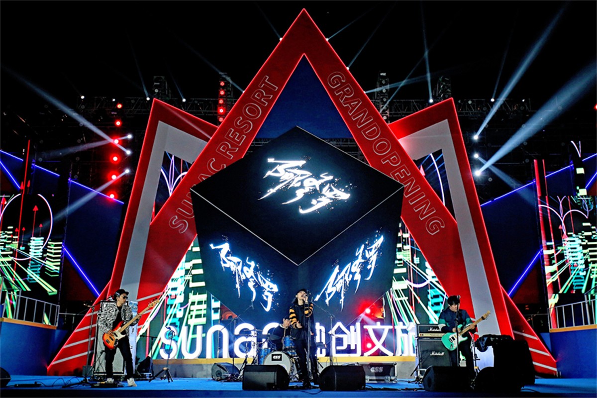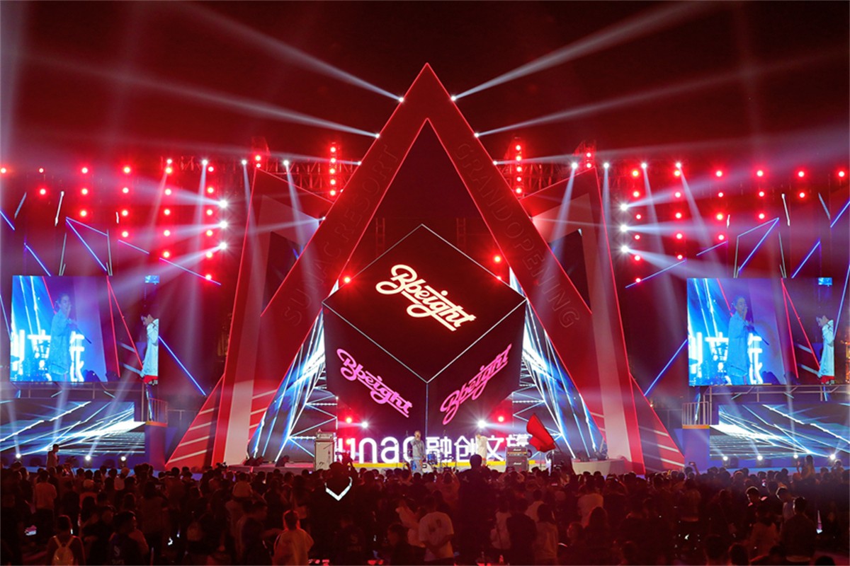 魔方•创音乐节引爆音乐狂潮!现场集结了猴子军团、阿修罗乐队、熊猫眼镜乐队等明星顶尖乐队!炫酷的灯光舞美加上摇滚乐将本次开业活动推向活动高潮!