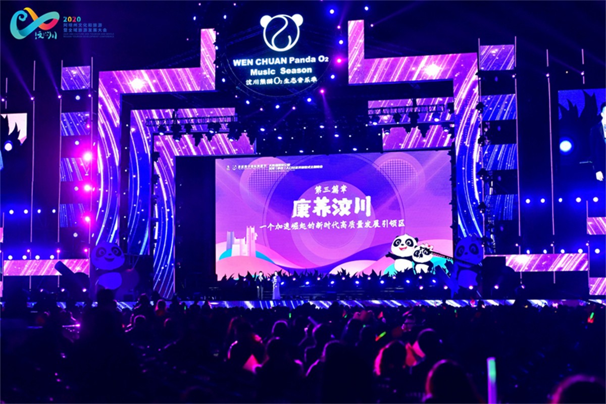 此次大会还设置了晚会,晚会现场歌舞、弹跳、情景剧、激光秀、合唱等艺术形式融为一体,融汇光影新媒体等多种表现手段,让来宾们在汶川体会了不一样的精彩和惊喜。